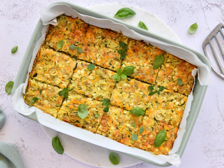 5. Die Mischung in die vorbereitete Form geben und glatt verstreichen. Gemüseauflauf etwa 50 Minuten goldbraun backen.