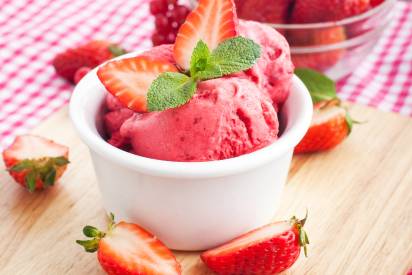 2. Pürieren, bis ein glattes und cremiges Eis entstanden ist. Falls nötig zwischendurch die Masse von den Seiten schaben.