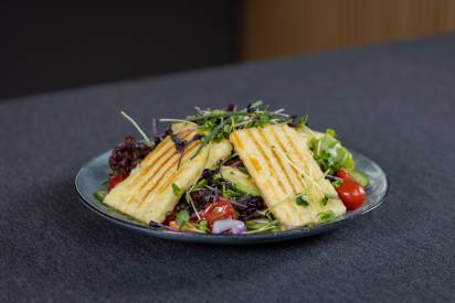 ZubereitungGrünen Salat waschen, gut trocknen und in Tellern anrichten.Zwiebel klein schneiden, Karotten in dünne Scheiben schneiden und auf den Salatblättern im Teller verteilen.Avocado aus der Schale nehmen und mit Zitrone beträufeln.Cocktailtomaten halbieren, Gurke in dünne Scheiben schneiden und ebenso mit der Avocado auf dem Salat verteilen.Mit Kresse und Schnittlauch garnieren.Grillkäse im Kontaktgrill anbraten und auf den Salat legen.Salatdressing: Für das Dressing Olivenöl, Balsamico, Senf, Zitrone, Honig, Salz & Pfeffer miteinander vermischen. Zubereitungsdauer30 MinutenSchwierigkeitsgradLeichtMengenangabe für4 Personen Zur Übersicht Weitere Genusstipps neuPink Latte20 MinutenLeicht5/5 Sektplatte25 MinutenLeichtNoch keine Bewertungen Mediterrane Kräuterbutter10 MinutenMittel5/5 Flammkuchen mit Birne und Camembert60 MinutenLeicht3/5 Hummus Greek Style20 MinutenLeicht5/5 Grillkäse mit knackigem Wok-Gemüse25 MinutenLeicht5/5